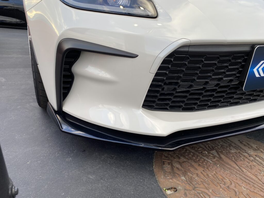 フロントディフューザーは純正バンパーより 10mmのダウン量とし、サイド部にフィンを立てることでスポーティ性を狙っております!