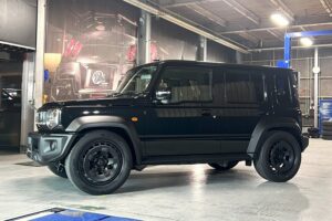 5ドア化により、ホイールベースが長くなった「ジムニーノマド」には、ローダウンスタイルが似合うのではないかと、入庫前からさまざまな構想(妄想⁉)を練っておりました・・・。