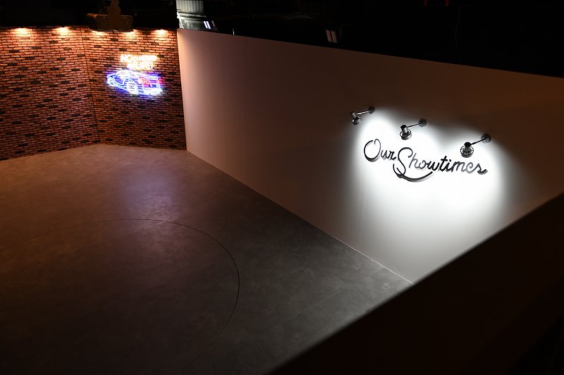 こちらはターンテーブルに載せたカスタムカーを上から見ながら、ゆっくりとくつろいで頂けるスペースになります。