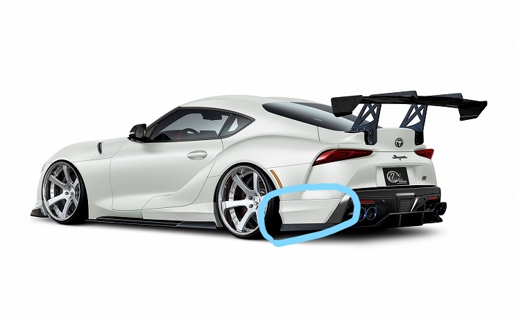 新型スープラの場合、純正のディフューザー?のサイド部分の立ち上がりが大きいので、これが好みの分かれるところかもしれません・・・。