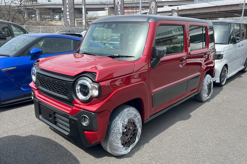 その純正ボディカラーの1台目はレッドパール×ガンメタの2トーンカラーデモカーとなります。