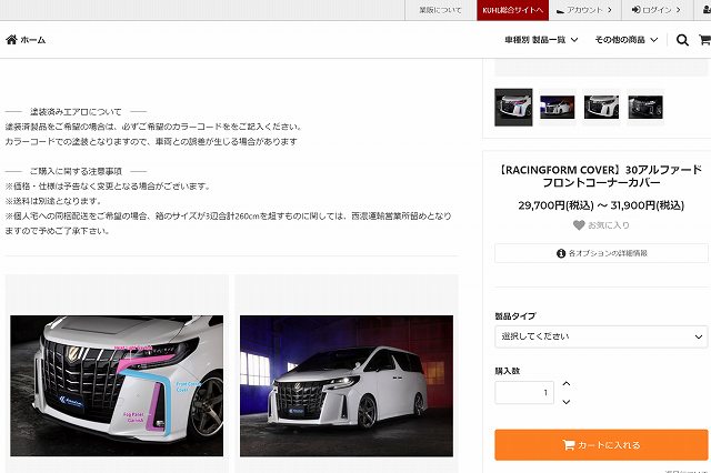 ② エアロパーツの購入 ➡ 「KUHLオンラインショッピングサイト」よりご購入頂く事が可能です。