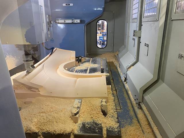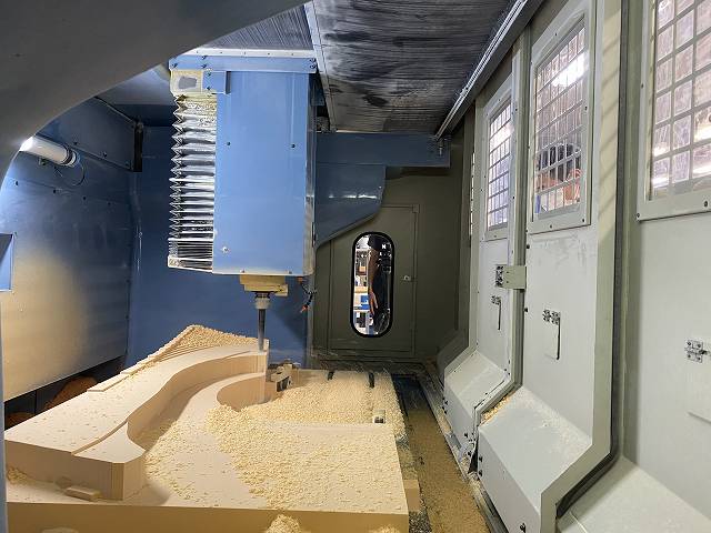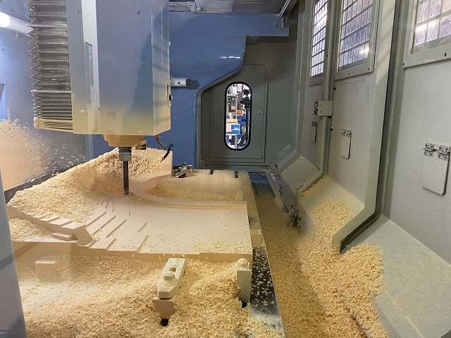 👆 ケミカルウッド素材を、ゆっくりと時間をかけてマシニングを行っていきます。