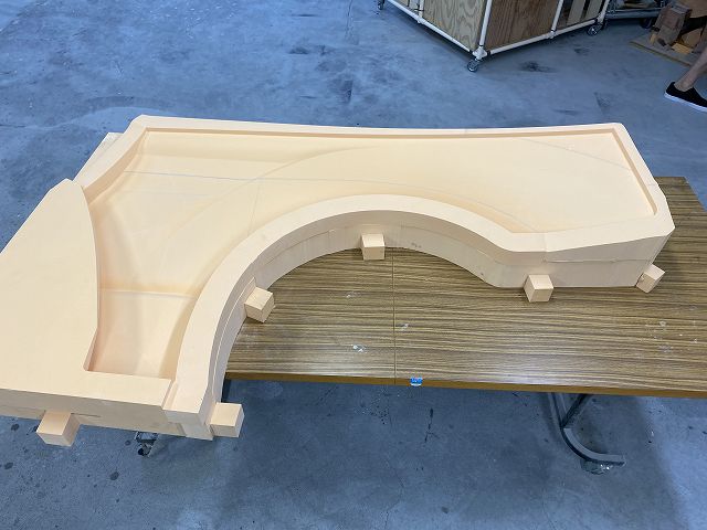 この後、この雌型にFRPを貼り込み脱型して、藤井寺工場にて現車に合わせたマッチング作業を行いマスターモデルが完成という流れになります。