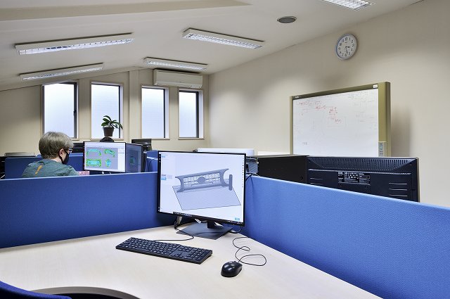 そして、「CADルーム」では熟練のスタッフがCADにより3Dデータ作成や設計を行い、マシニングセンターへのパス出しが行われます👇
