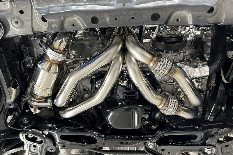 ↑こちらはエンジン下部の「TRUSTエキマニ」と「TRUST触媒(メタルキャタライザー)」装着画像となります。