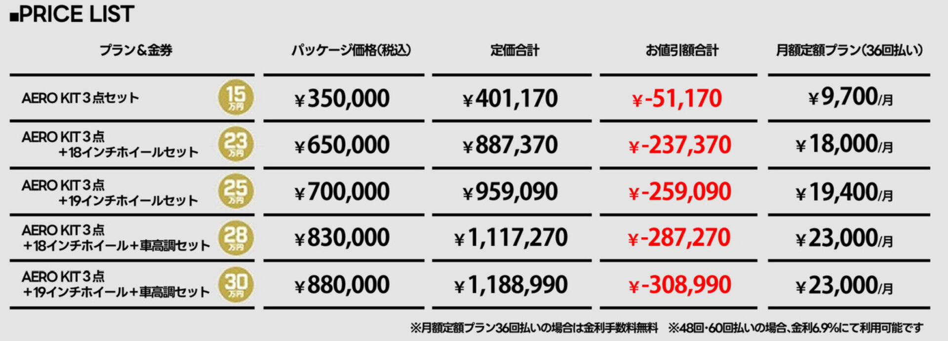 ※エアロパーツ以外に15%OFF適応はされません。