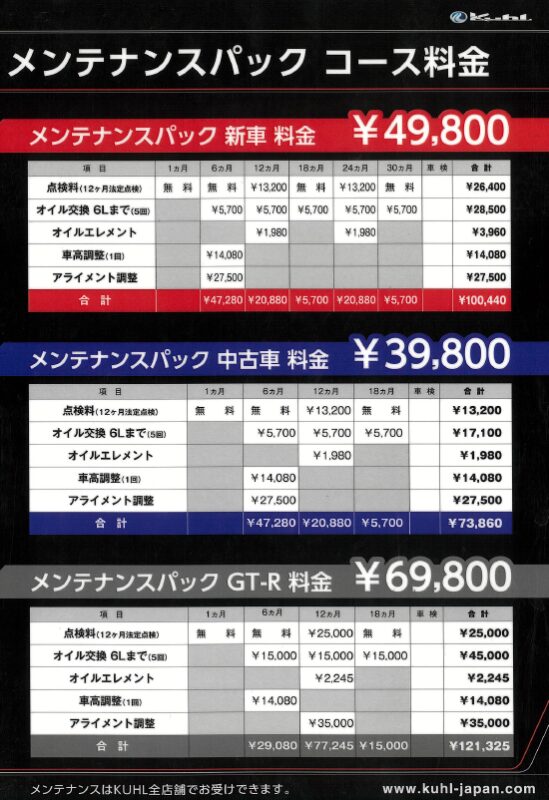 メンテナンスパックとは、ご加入いただくことで法定点検やオイル交換等の基本のメンテナンスをお得にご利用いただけるパックです!
