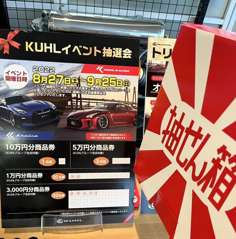 Kuhlコンプリートカーの場合は10万円Kuhl商品券