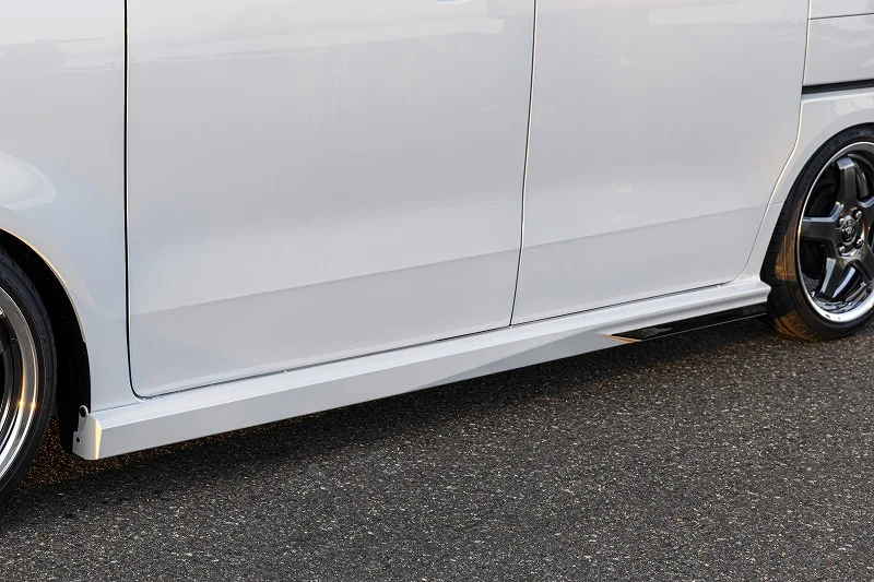 ノーマルボディのシンプルなラウンド形状・内巻きスタイルもカッコいいですが、エアロパーツを装着することで、エッジ感を際立たせたボディのボリュームUPスタイルに変身させることで、どっしり感(安定感)の増したスタイルへと変身させてみました。