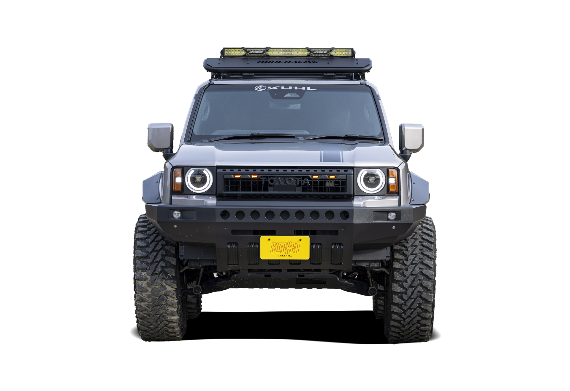 KUHL IRON BUILDは、スチールバンパーを思わせる無骨な造形をFRPで再構築し、デザインと機能性を両立したフルカスタマイズカーです。
