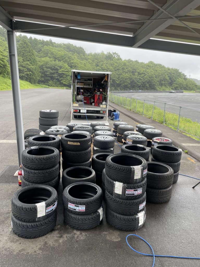 タイヤとタイヤ付きホイールもこれだけの数を準備して臨みました。