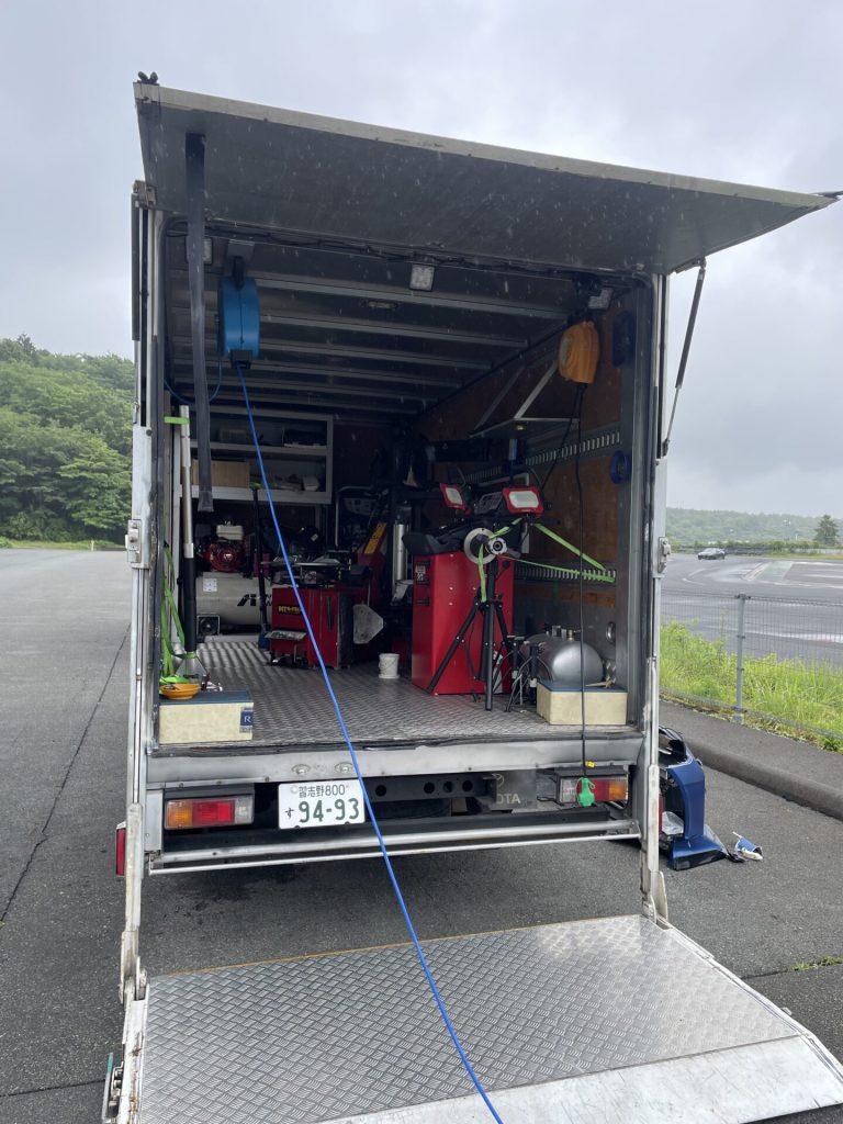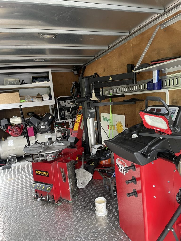 タイヤを交換出来るようにトラックの中には、タイヤチェンジャーとホイールバランサーも設置されていました。